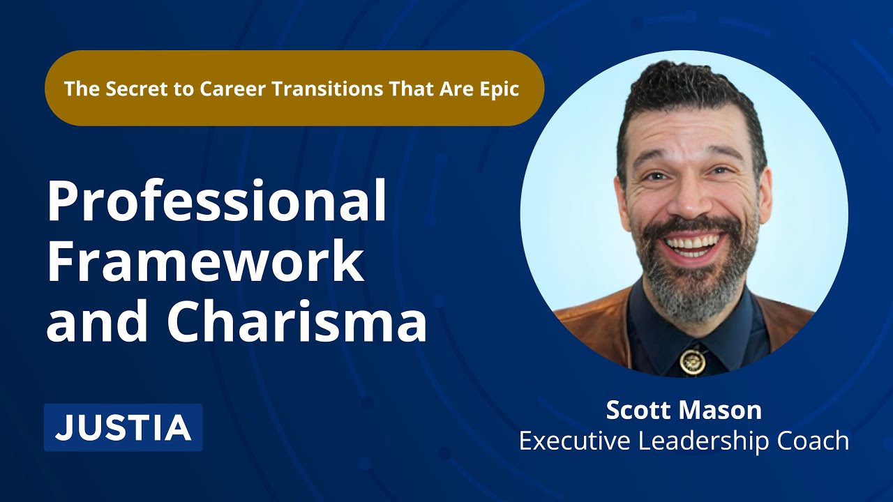 Hello, in this clip from our Justia Webinar, The Secret to Career Transitions That Are Epic, Scott Mason gives insights about how to rewrite your professional framework and the role of charisma on career transitions. If you want to see more Justia Videos on law practice and legal marketing, be sure to subscribe to our channel.